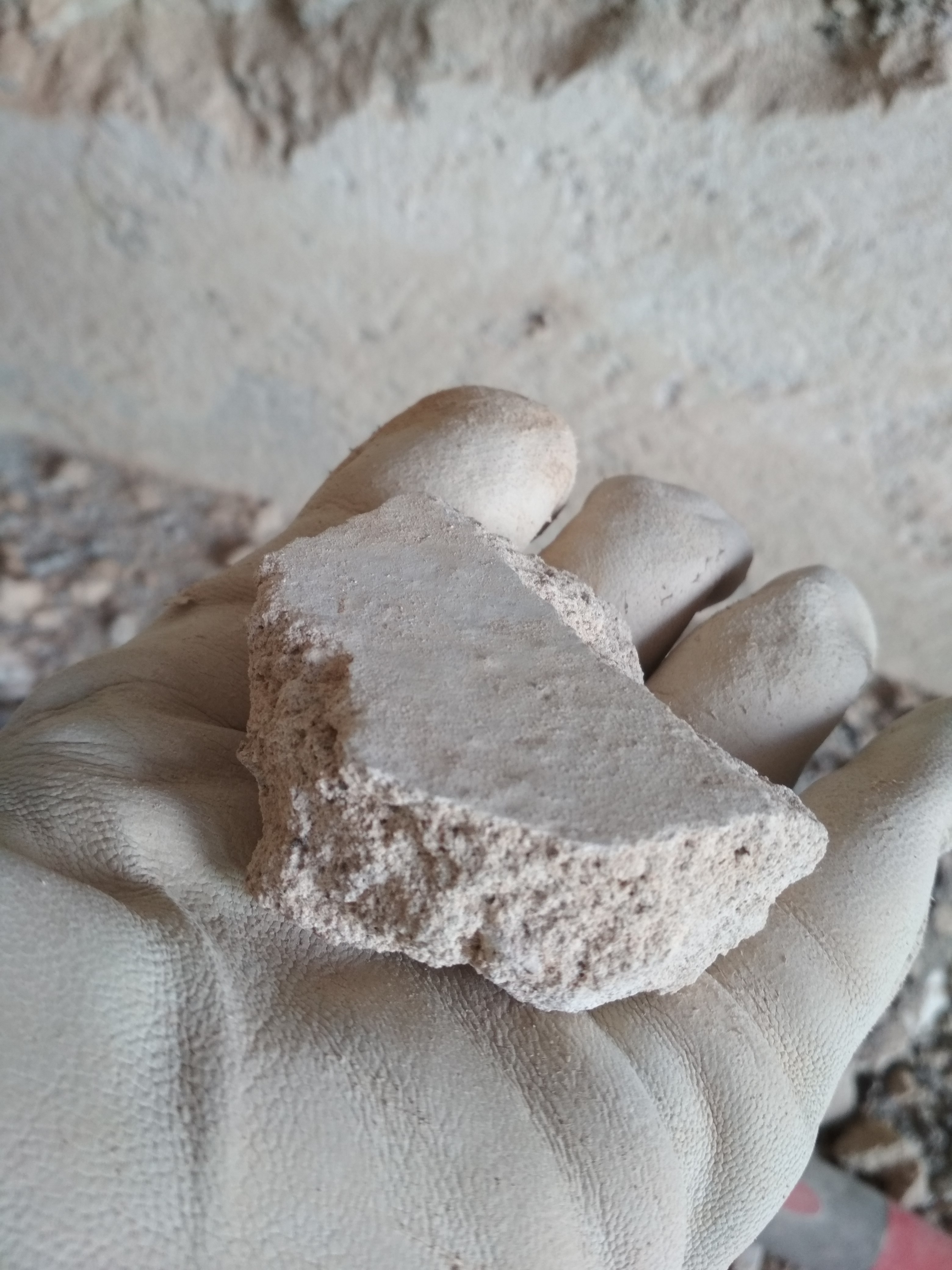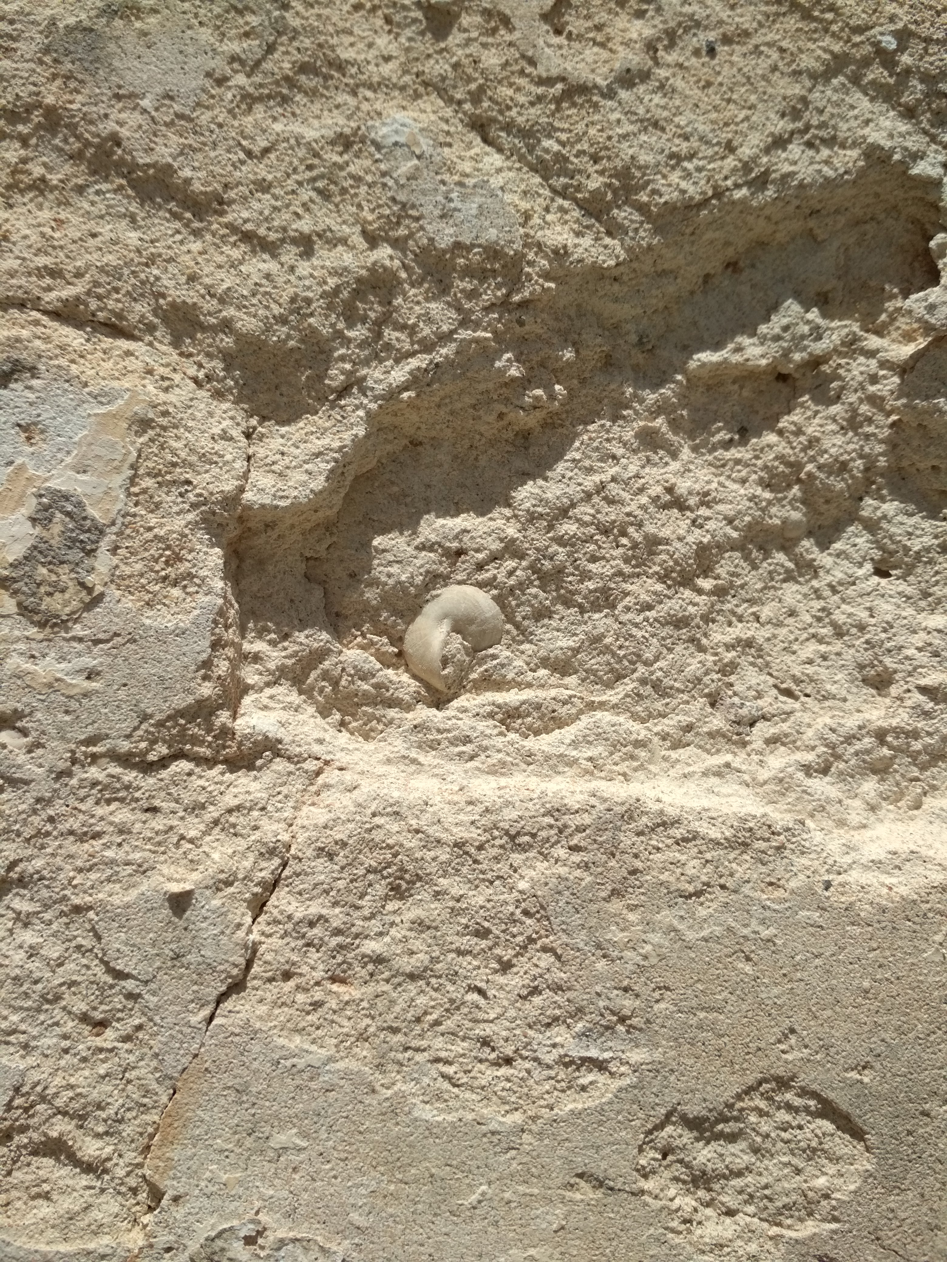 Ach, und dann, schaut mal das dritte Bild: Eine Schnecke! Erst die Muscheln, jetzt die Schnecke. Es ist eindeutig: Der Sand, der verwendet wurde, ist Jable, damit ist er mit seinem Salzanteil mitschuldig an den feuchten Wänden. Erklärt auch, dass die Wände, die ich vom Putz (und nicht nur vom Zement) befreie, langsam aber sicher trocknen, und dort, wo der Putz (auch der ohne Zement) noch drauf ist, nicht.