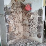 Außerdem recht interessant, dass offensichtlich hier (erstes Bild dieser Reihe, mittig) Stücke von altem Putz wiederverwendet wurden. Vermutlich um Steine zu sparen, hat man die in den frischen Putz gedrückt. Ich brauchte eine ganze Weile, bis ich entdeckte, warum da so weiße Streifen in der Wand waren, doch dann hab ich das mit dem Putz verstanden, und kapiert, dass es die Farbe ist, die auf der alten Wand gewesen sein musste. So findet alles seinen Weg wieder ins Haus. Wir sammeln ja auch sämtliche Steine, die beim Putzabschlagen aus der Wand fallen, damit wir sie später wieder in den Putz drücken können. Das Haus soll schließlich das alte bleiben. 😉