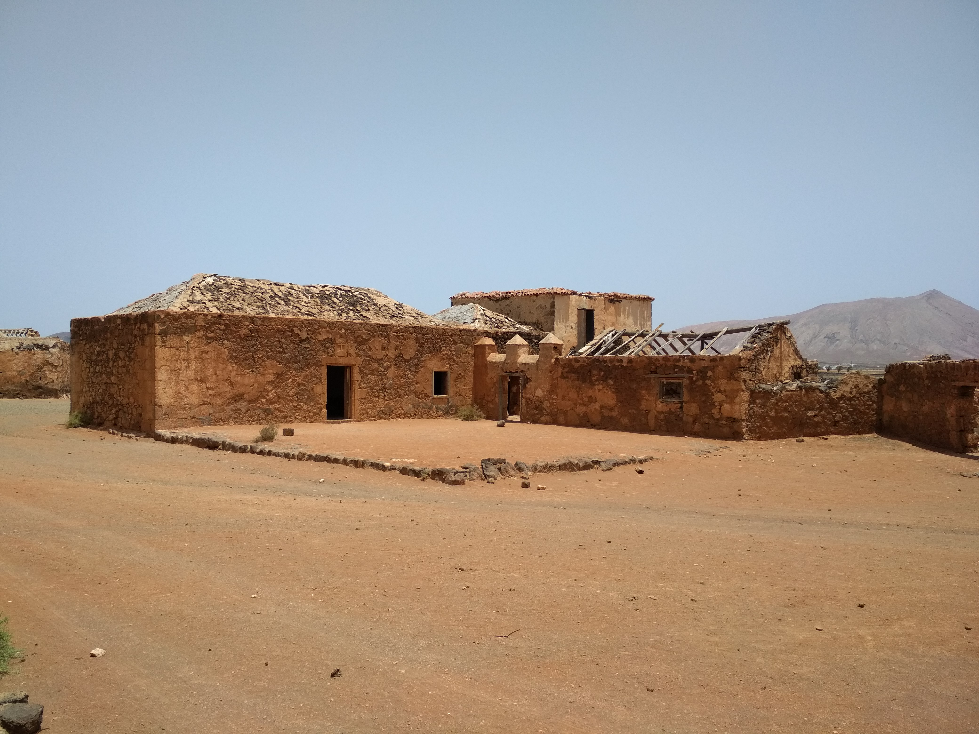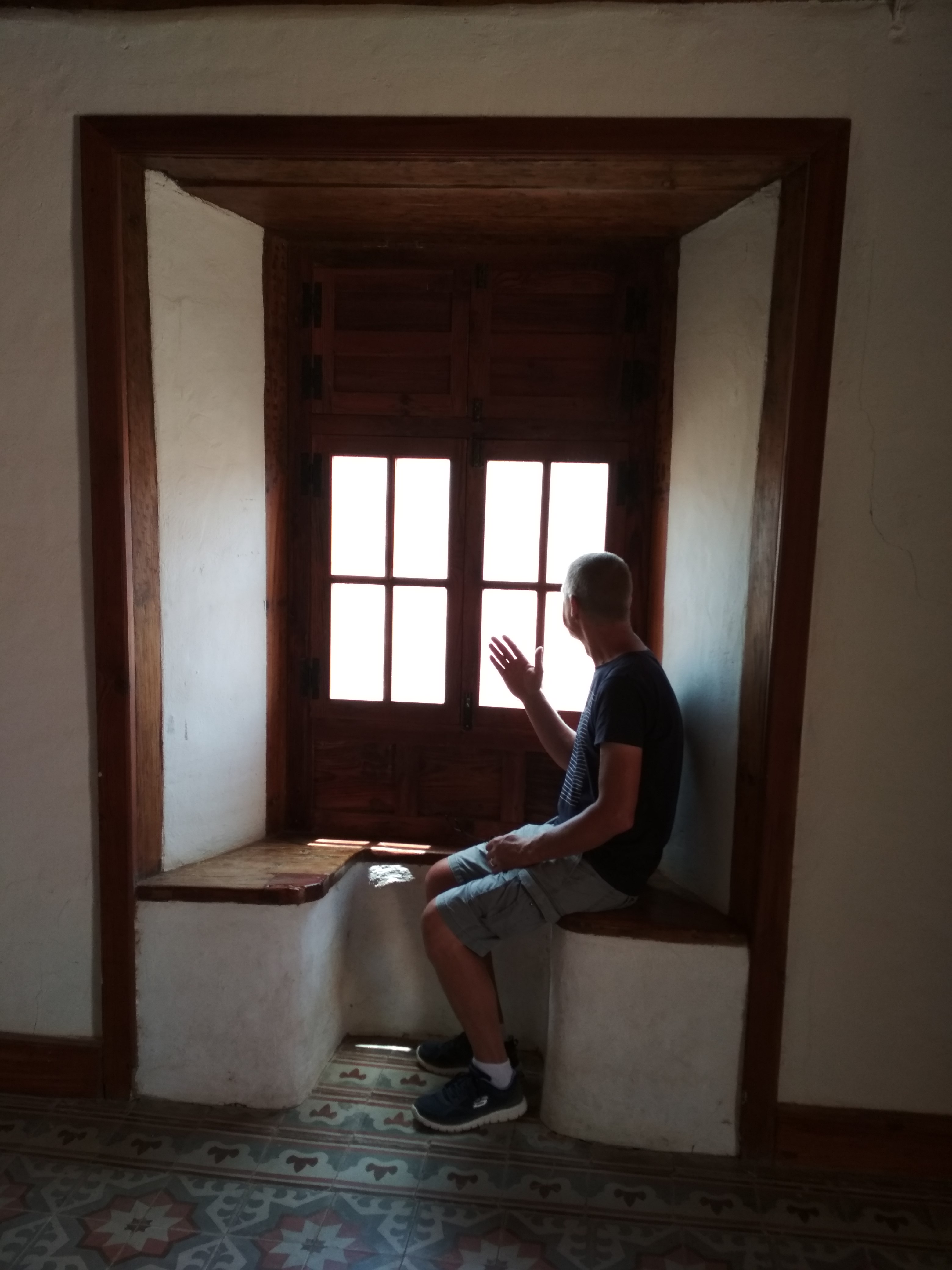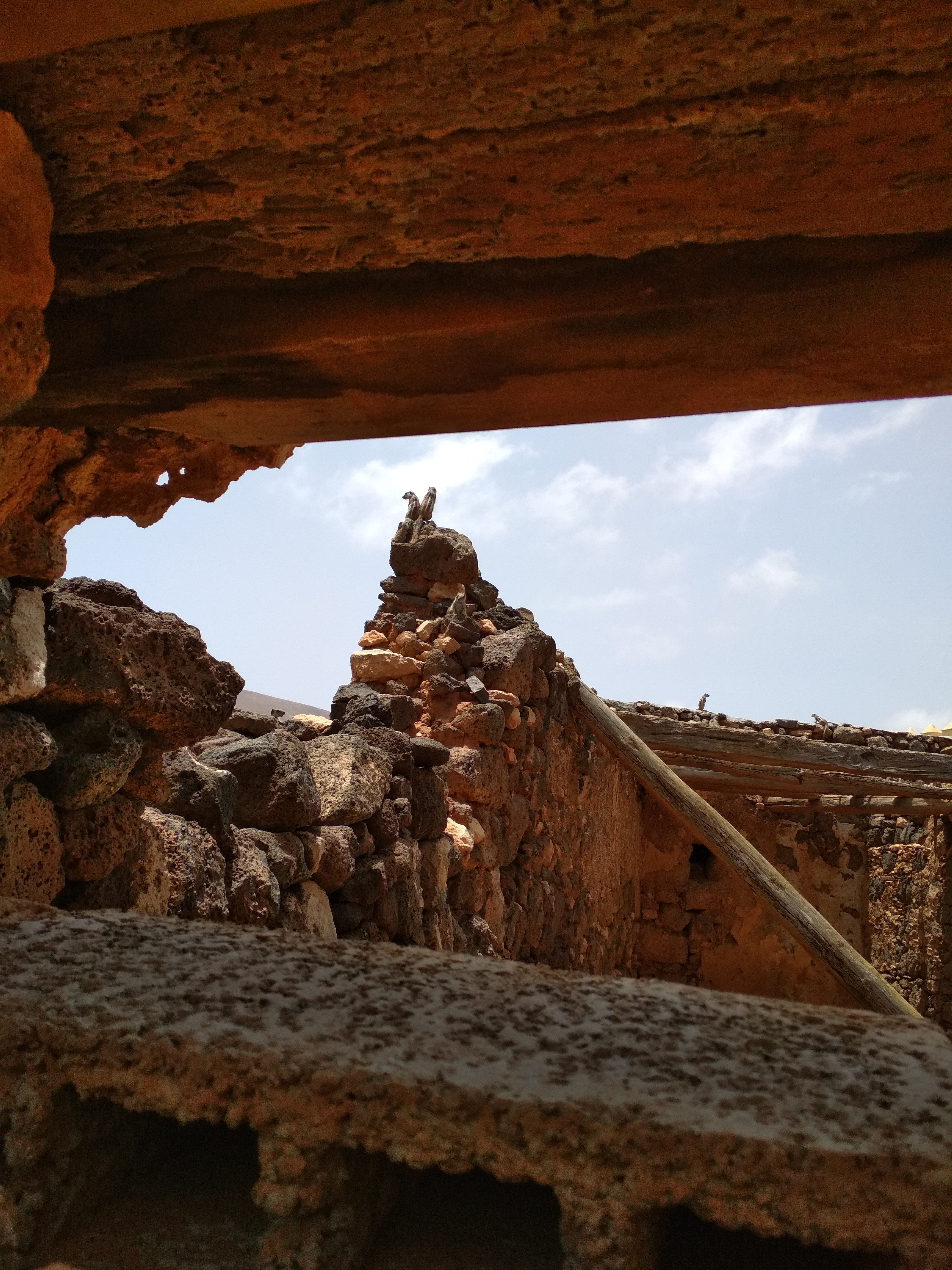 Zur Sehenswürdigkeit an sich, dem restaurierten Teil der Anlage, gingen wir erst, nachdem wir die unrestaurierten Gebäude drumherum besichtigt hatten. Aufgrund ihres recht zerfallenen Zustandes boten sie einen wunderbaren Einblick in die Bauweise der alten kanarischen Häuser. Für uns ein gefundenes Fressen, jetzt, wo wir selbst an so einem alten Ding herumwerkeln. Die Wände, die Decken, die Türen! So haben sie die also vor drei-, vierhundert Jahren eingebaut. Kaum zu glauben, dass einige unserer Türen von 1920 in Mala genau so aussehen. Irgendwie denke ich immer noch, dass zumindest Teile unseres Hauses älter sind als einhundert Jahre, aber vielleicht hat sich das Alte auch einfach nur bewährt, so dass man noch viel später die Bauweise unverändert ließ. Und dennoch …