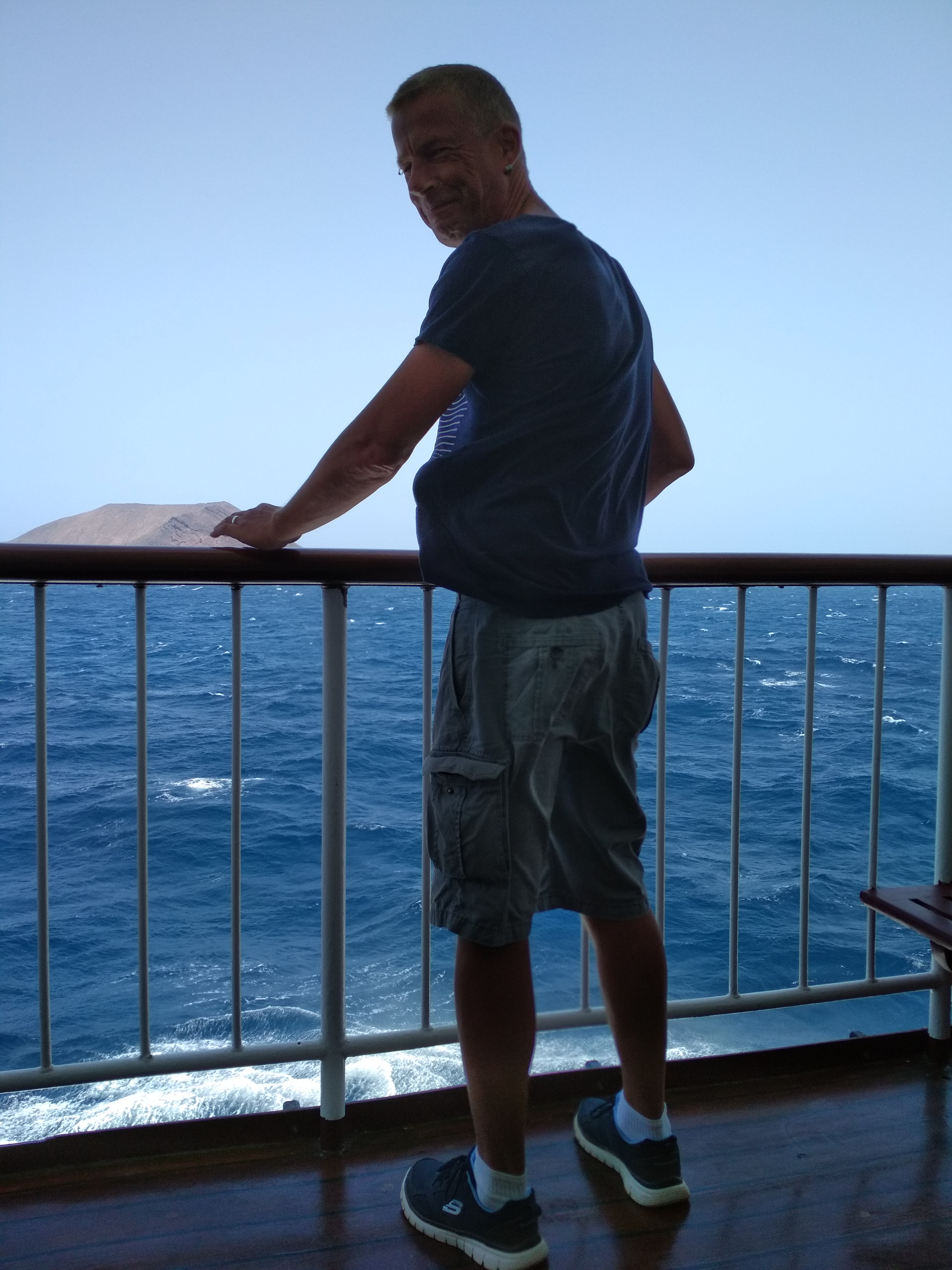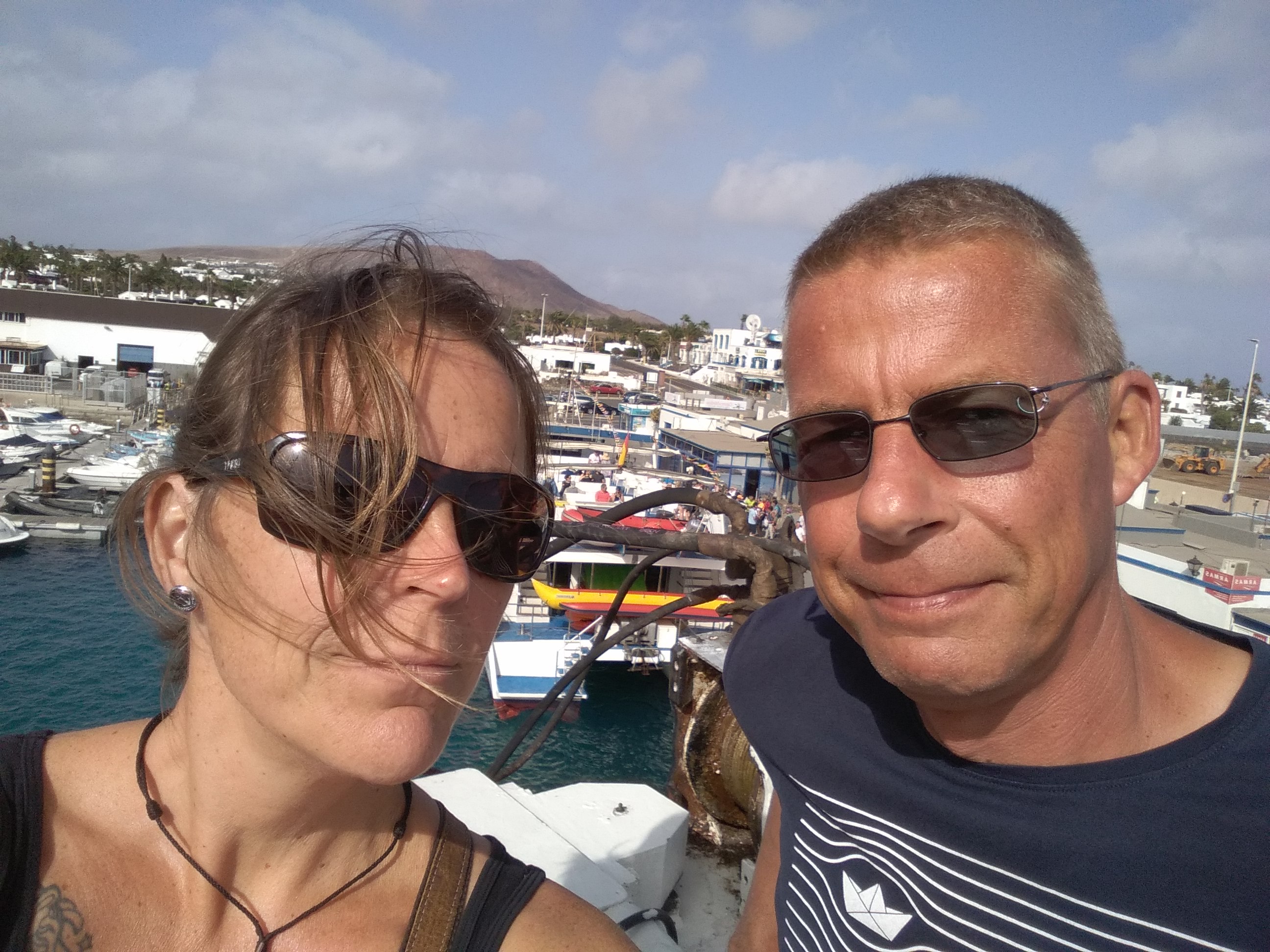 Die Fähre legte mit nur zwanzig Minuten Verspätung ab. Unser Auto war sicher verstaut im Bauch des Schiffes, das erste Mal, das war bestimmt für ihn genau so aufregend wie für mich. An Deck schien die Sonne, der Schornstein qualmte und stank, und so legten wir kurze Zeit später in Corralejo an.