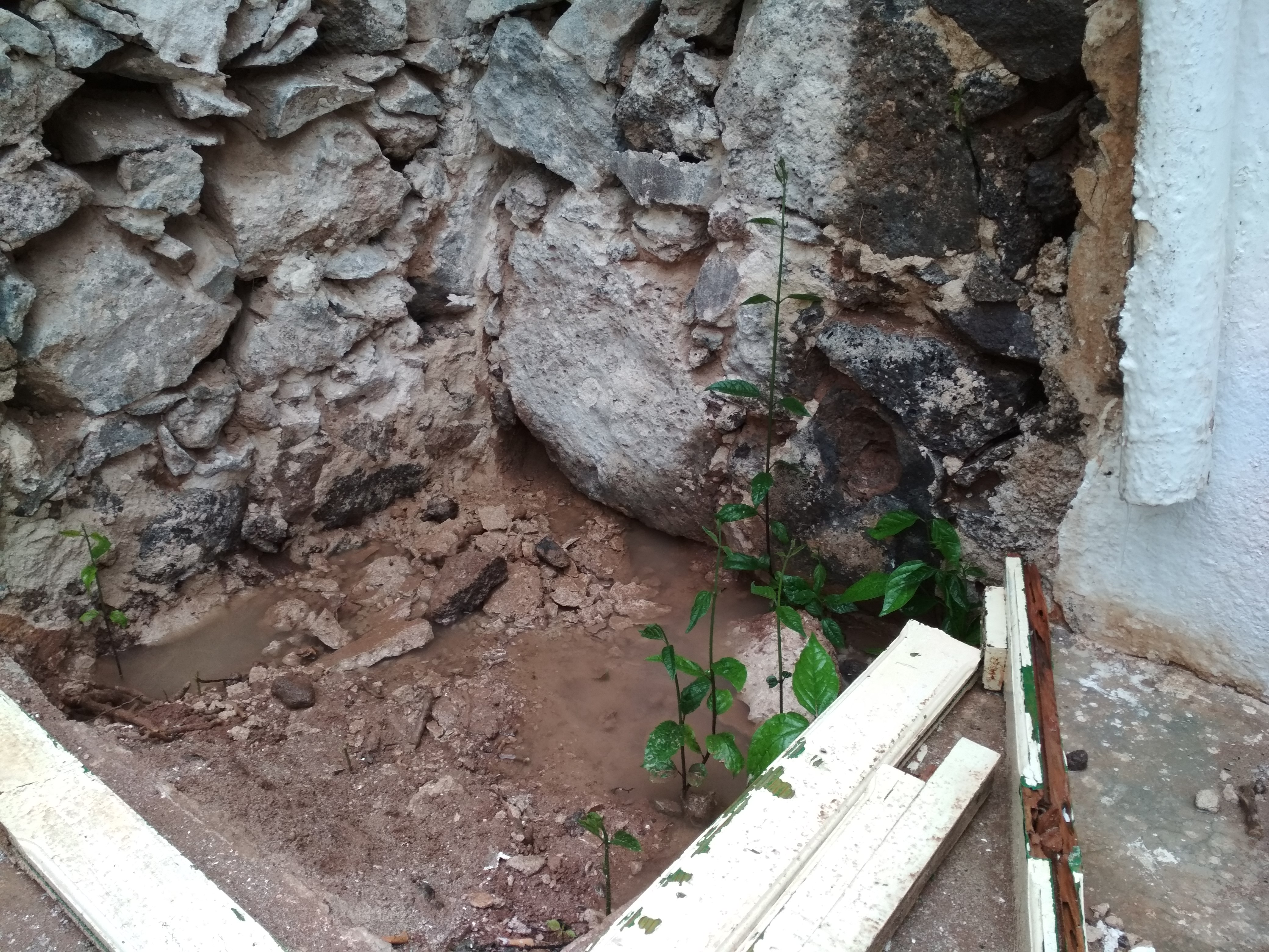 Und tatsächlich läuft der Barro aus den offenen Wänden raus und der Boden im Salón sieht aus, als hätten wir unsere Pläne geändert, würden dort doch kein Dach errichten wollen, sondern den Bereich in eine Poollandschaft verwandeln. Nicht schön. Wie wir das wohl je wieder trocken kriegen?