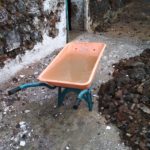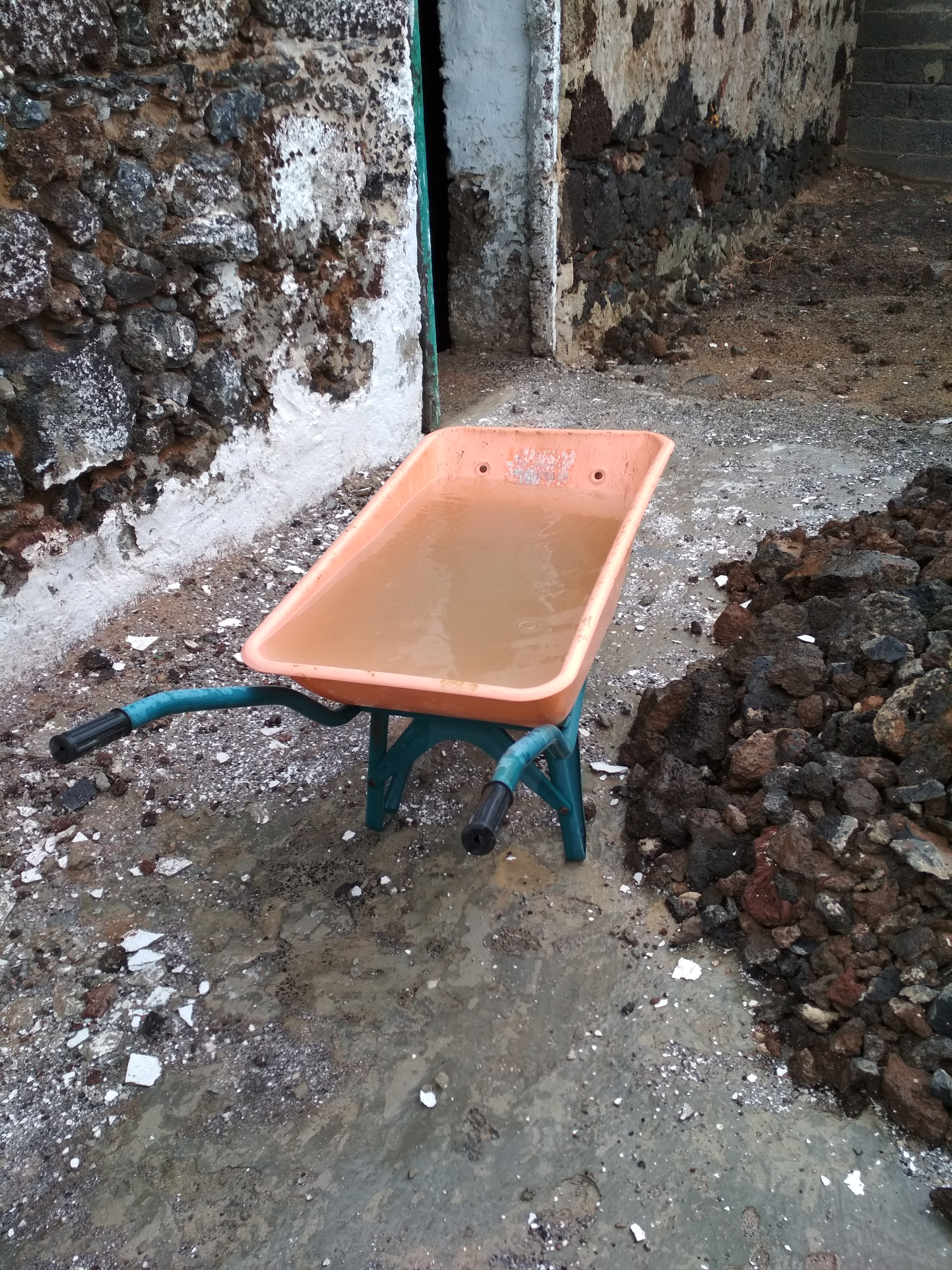Gleich heute früh sind wir los, um zu schauen, ob unser Haus noch steht. Ja, tut es, aber meine Güte, die volle Schubkarre, die uns im Patio begrüßte, ließ nichts Gutes erwarten.