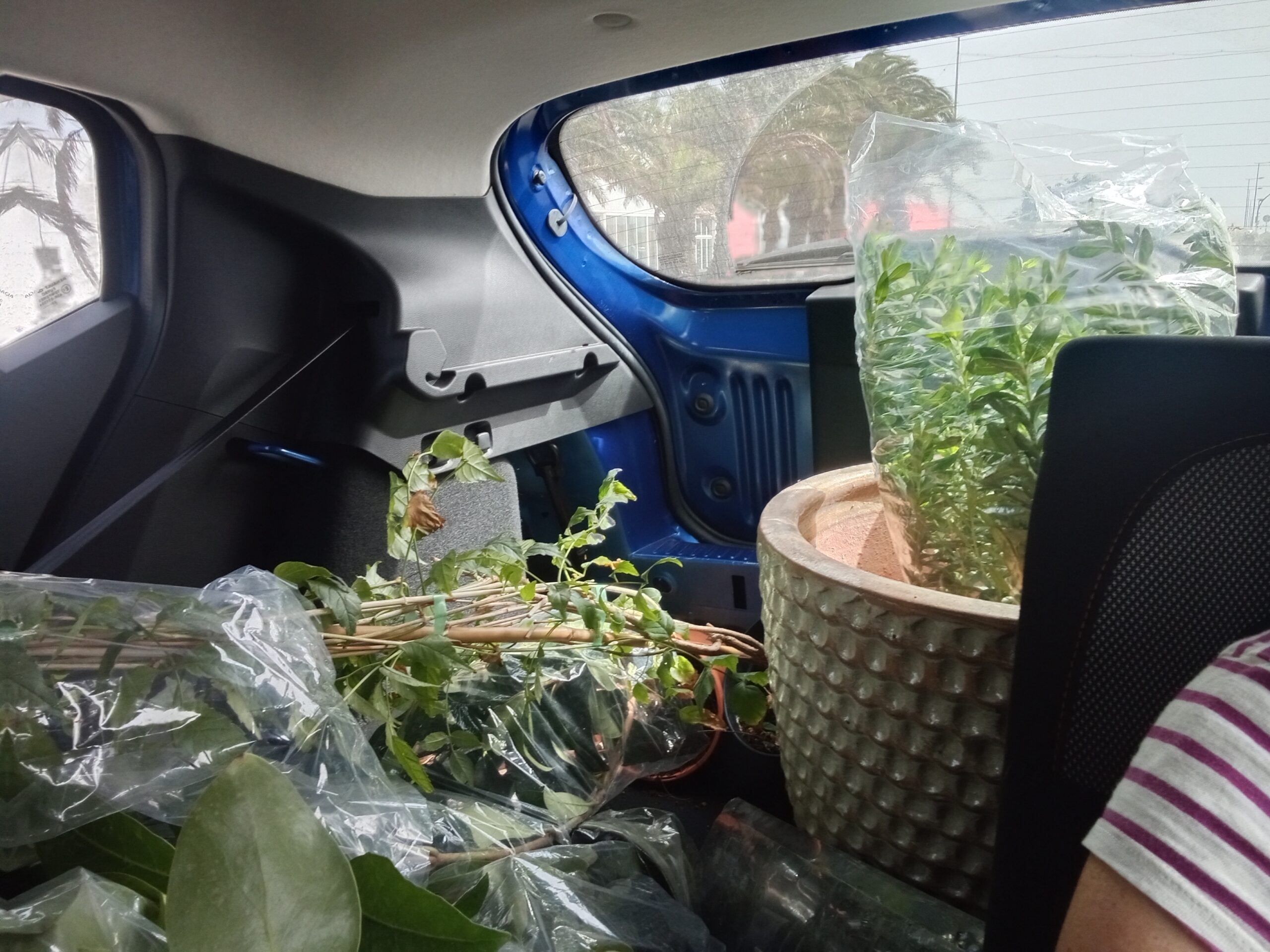 Zwei Blumenpötte werden links und rechts den Bürgersteig bewachen, damit die Autos nicht so nah an unserem Haus vorbeifahren. Die dazu ermunternden Pflanzen entdeckte ich neulich beim Müll: