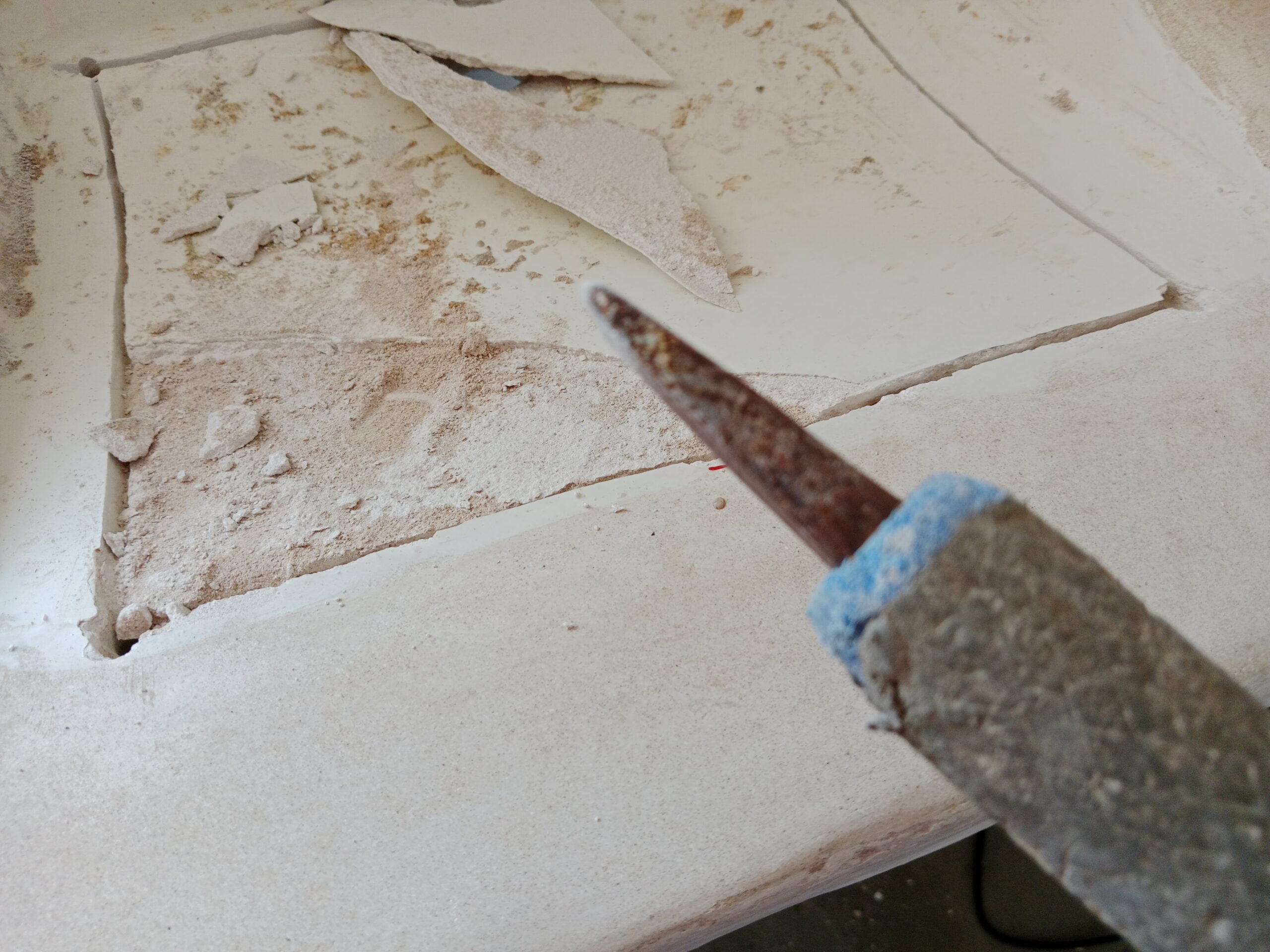 Natürlich meldete sich niemand, aber als Ollie nach 6 Wochen zum Laden fuhr, war die Fliese doch vor Ort. Sie händigtem ihm natürlich zuerst eine falsche aus, aber er ist ja clever genug, um gleich zu schauen. Nun liegen die Fliesen bereit zum verfliesen. Vielleicht am Montag, mal schauen.