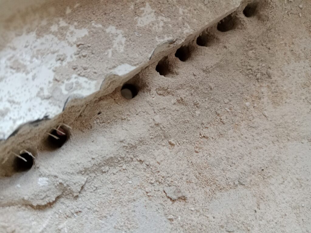 1. Ja, selbstständig geöffnet, und niemanden interessiert’s. Zum Glück. Sowohl die Polizei als auch Canal Gestion fuhren bereits vorbei, zwar neugierig, aber ohne großes Interesse. Was sonst nervt, ist hier jetzt mal gut. Ob das zu unserem Grundstück gehört, keine Ahnung, aber es ist nass, also machen wir das jetzt endlich was. Wir lassen den Graben da jetzt ein paar Tage, dann kommt Kies drauf und oben drauf noch Kalk, wird im Prinzip auch eine Drainage, wenn auch nur eine kleine.